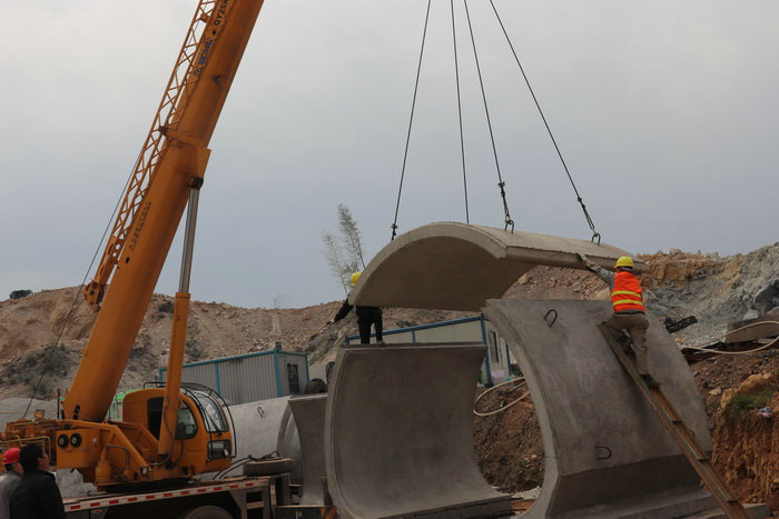 圖為工人正在吊裝涵洞預制構件裝配式涵洞的應用,改變了過去涵洞點多線長地形條件限制、工程質(zhì)量控制難度大、安全質(zhì)量監(jiān)管困難的弊端,減少了對周圍環(huán)境的污染,縮短了作業(yè)時間,有效提高施工效率,對提升涵洞品質(zhì)起到至關重要的作用。
