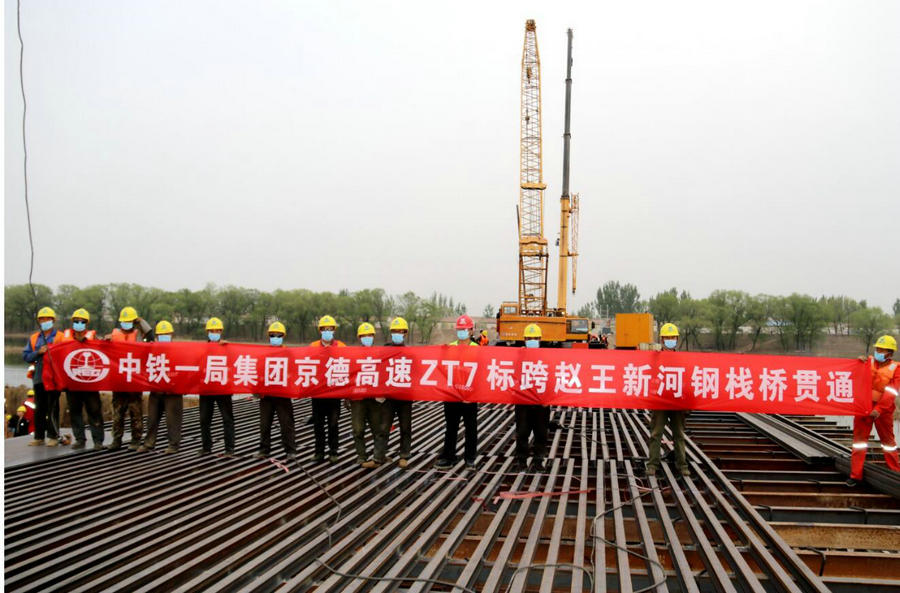 中國(guó)鐵路工程建設(shè)網(wǎng)訊(通訊員范通帥)4月15日,中鐵一局京德高速ZT7標(biāo)項(xiàng)目跨趙王新河施工鋼棧橋順利貫通,打通南北兩岸物資、設(shè)備運(yùn)輸“生命線”,為后續(xù)連續(xù)梁施工按下“快進(jìn)鍵”。