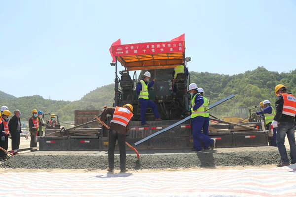 路面分部經(jīng)理劉少華在接受采訪時說到:“今天試驗段的順利攤鋪,標(biāo)志著中鐵十一局集團二公司承建的十堰快速路項目正式進入到路面工程施工階段。我們有信心完成指揮部、市交通局下達(dá)的施工任務(wù),保證在今年7月底完成十堰東站至華西段半幅瀝青中面層通車的目標(biāo),為十堰人民交上一份滿意的答卷。”此次路面底基層試驗段的順利鋪筑,是十堰快速路項目百日攻堅施工計劃的一次階段性勝利,極大鼓舞了全體參建人員的士氣,為后續(xù)路面施工提供了可靠的檢測數(shù)據(jù)和技術(shù)指導(dǎo)。下一步,項目部將繼續(xù)按照公司“雙創(chuàng)”爭先活動和“大干100天”勞動競賽活動要求,繼續(xù)保持施工大干熱潮,確保按業(yè)主時間節(jié)點完成任務(wù),努力打造成公司在十堰片區(qū)的標(biāo)桿工程。