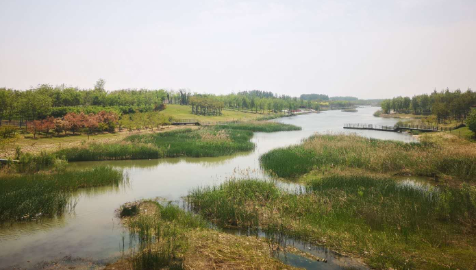 梅河干流(商登高速-炎黃大道)位于鄭州航空港經(jīng)濟綜合實驗區(qū)(鄭州新鄭綜合保稅區(qū))南水北調總干渠以南,總長約13公里,連接廟后塘溝、高路河、梅河支流,是重要的泄洪水道,梅河干流蜿蜒曲長,銜接用地類型眾多,具有城市生態(tài)鏈的作用與特質。該工程范圍內有生態(tài)濕地、體育公園、濱湖廣場、香雪灣四個大型景觀節(jié)點,建成后給港區(qū)市民提供了一個集休閑、觀光、娛樂為一體的新景點。