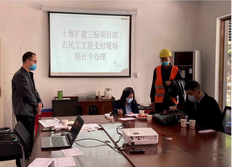 工資支付事關(guān)農(nóng)民工切身利益,為確保項(xiàng)目農(nóng)民工權(quán)益不受侵害,根治欠薪問(wèn)題,十堰大川項(xiàng)目部在與協(xié)作隊(duì)伍進(jìn)行充分溝通后,開(kāi)設(shè)了農(nóng)民工工資專(zhuān)用賬戶(hù),并邀請(qǐng)湖北商業(yè)銀行上門(mén)為農(nóng)民工辦理專(zhuān)屬工資卡。