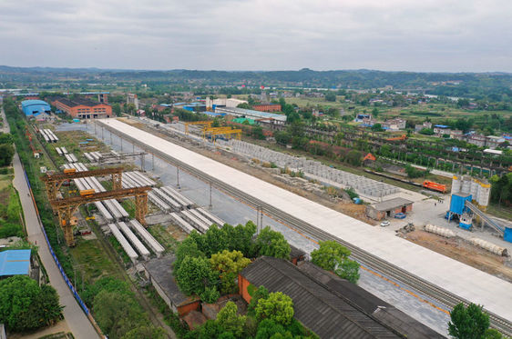 當前,正值成都東進戰(zhàn)略和簡州新城“三中心一基地”建設大力推進之際,對建材需求十分旺盛,恰逢成都鐵路局有限公司大力提高鐵路貨物運量政策的支持,中鐵二十三局四公司快速將自身鐵路專用線改造升級,并對原鐵路橋梁生產場地進行了平整改造硬化,3月18日,鐵路專用線通過成都鐵路公司驗收,3月19日,第一列掛著30個車皮滿載2000余噸砂石的專列駛入該貨場3道,正式開啟鐵路建材砂石接卸運營業(yè)務。