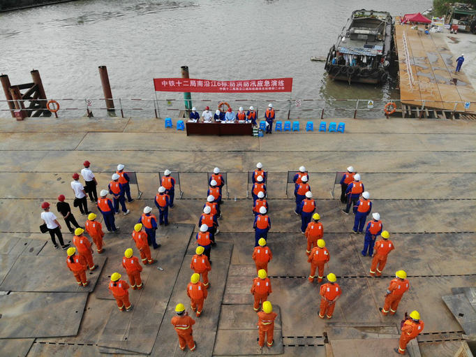 為做好2020年防汛工作,貫徹落實上海局及南沿江城際鐵路建設(shè)指揮部防洪安全管理工作安排,進(jìn)一步檢驗我標(biāo)段防洪搶險指揮決策、應(yīng)急響應(yīng)與實戰(zhàn)能力,不斷提高項目部的安全保障能力,使項目部能迅速、高效、有序地組織搶險工作,通過防洪搶險演練,保障人員和財產(chǎn)安全,將可能發(fā)生的洪水災(zāi)害損失降低到最低限度。2020年4月30日下午,中鐵十二局南沿江城際鐵路六標(biāo)項目經(jīng)理部舉行2020年防洪搶險應(yīng)急演練。項目經(jīng)理部及中鐵二院監(jiān)理站主要領(lǐng)導(dǎo),以及各分部共60多人參加演練。此次演練的項目主要包括信息及事故上報、應(yīng)急響應(yīng)、搶險救援等。演練過程中,參演人員做到全員齊心,上下聯(lián)動,通力合作,圓滿完成防洪搶險應(yīng)急演練任務(wù),達(dá)到預(yù)期目的。