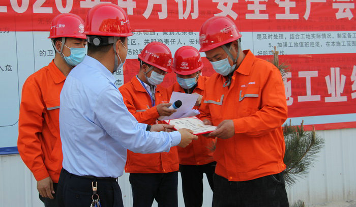 為先進個人頒發(fā)證書 面對前期疫情影響,以及項目受資金、材料、合同及大電制約的實際情況,項目負責人魏惠民在總結(jié)講話中對全體參建人員提出了五點希望和要求:一是要求全體人員要要堅定信心,提高認識,明確思路,加快施工生產(chǎn)進度;二是要加強安全生產(chǎn)工作,健全安全生產(chǎn)規(guī)章制度,加大安全生產(chǎn)資金及人員投入,做好日常安全監(jiān)督與巡查制度,落實各類安全風險的預防和控制,從抓隱患治理、風險管控各方面入手,在源頭上杜絕安全事故的發(fā)生;三是抓緊抓實抓細質(zhì)量管理工作,在施工中高標準,嚴要求,對標先進,補齊短板,在提升質(zhì)量意識、加強精細化管理方面下功夫,充分發(fā)揮作為駐地央企的示范引領作用;四是狠抓成本管控工作,始終秉持“盈利光榮,虧損可恥”理念,樹立大成本意識;五是抓好黨建、廉政建設和企業(yè)文化建設工作,學習黨的知識,開展各項活動,緊跟時代要求,增強大家的凝聚力和向心力,把管理人員、服務人員、施工人員、業(yè)主、監(jiān)理、地方政府等各級人員團結(jié)起來,圍繞我們的建設目標,發(fā)揮正能量,促進施工生產(chǎn)。