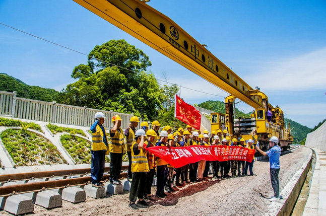 5月4日下午,為促進(jìn)施工生產(chǎn),充分發(fā)揮項(xiàng)目青年員工在急、難、險(xiǎn)、新、重任務(wù)中的先鋒突擊作用,培育“攻堅(jiān)克難、崇高實(shí)干、銳意創(chuàng)新、爭(zhēng)創(chuàng)一流”的三局鋪架團(tuán)隊(duì)精神,展示線(xiàn)橋青年的擔(dān)當(dāng)精神和獨(dú)樹(shù)一面的鮮明旗幟,確保515正線(xiàn)軌通,930全線(xiàn)開(kāi)通工期節(jié)點(diǎn)。在鋪軌施工現(xiàn)場(chǎng)衢寧項(xiàng)目團(tuán)支部開(kāi)展了“傳承五四精神 確保全線(xiàn)開(kāi)通”青年突擊隊(duì)宣誓活動(dòng),公司團(tuán)委負(fù)責(zé)人逯平平參加此次活動(dòng)。