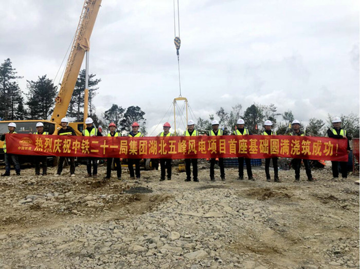 5月11日,由中鐵二十一局一公司承建中節(jié)能湖北五峰牛莊120MW風(fēng)電項(xiàng)目首個(gè)風(fēng)機(jī)平臺(tái)混凝土澆筑完成。
