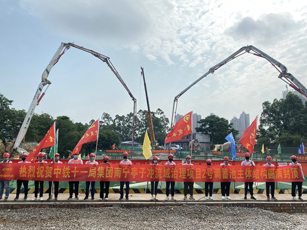 5月13日,中鐵十一局二公司南寧亭子沖流域治理2#調(diào)蓄池順利封頂,這是該項目年后復(fù)工復(fù)產(chǎn)關(guān)鍵性節(jié)點勝利,也是自去年6月開工以來首個調(diào)蓄池封頂,為接下來其他調(diào)蓄池順利進(jìn)展奠定了堅實基礎(chǔ)。
