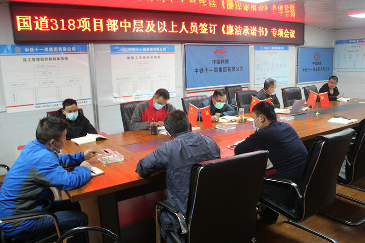 國道318項(xiàng)目部中層及以上人員簽訂《廉潔承諾書》儀式