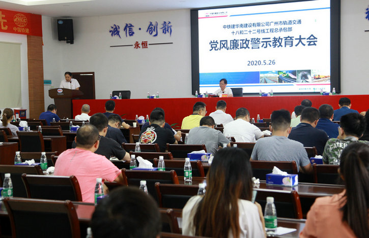 (本站消息,通訊員段緒江),5月26日下午,中鐵建華南建設(shè)有限公司所屬廣州地鐵十八和二十二號線總承包部召開反腐倡廉警示教育大會,總承包部全體管理人員參加了會議。