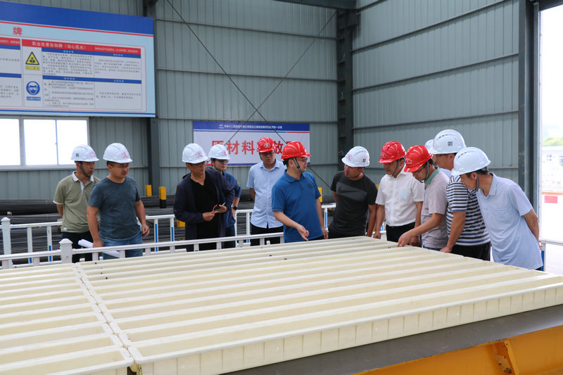 何志超一行先后檢查了小型預制構(gòu)件廠和跨滬寧城際鐵路特大橋跨232省道、京杭大運河(70+108+70)m連續(xù)梁,詳細查看了小型預制構(gòu)件廠規(guī)劃布置、生產(chǎn)設備運行、預制模具具等,聽取了預制構(gòu)件生產(chǎn)準備情況匯報,對橋梁柵欄的徽標提出指導性修改意見,要求盡快將預制構(gòu)件生產(chǎn)系統(tǒng)配套的智能機械設備組裝到位,達到生產(chǎn)條件,組織其他標段來觀摩學習。