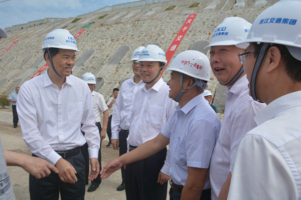 浙江省副省長劉小濤(左一)到金臺(tái)鐵路靈江特大橋調(diào)研工作
