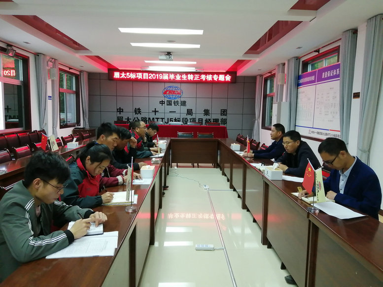 本站陜西寶雞訊:5月23日,為充分了解和掌握項目部2019屆畢業(yè)生在見習期間生活、工作動態(tài),中鐵十一局四公司眉太高速5標項目部召開2019屆畢業(yè)生轉(zhuǎn)正考核專題會,會議由項目領(lǐng)導班子成員、2019屆畢業(yè)生及導師參加。