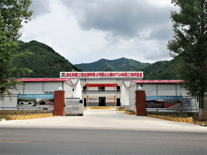 中鐵十一局四公司眉太高速公路4標工地試驗室位于陜西省寶雞市桃川鎮(zhèn)路平溝對面,距離項目部駐地3Km,距離拌合站1Km,延342國道旁邊,交通便捷。工地試驗室占地面積2200平方米,其中房屋面積400平方米,共設(shè)立了力學(xué)室、水泥混凝土室、標準養(yǎng)護室、水泥室、化學(xué)室、集料室、土工室、加工室、樣品室、留樣室、外檢室等11個操作間,各操作間均滿足標準化建設(shè)要求。