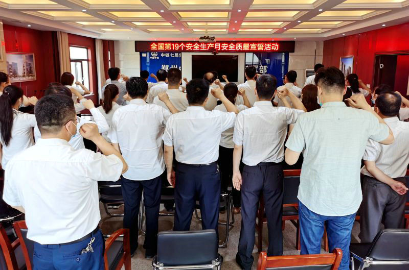 今年6月是全國第19個“安全生產(chǎn)月”,為響應(yīng)“消除事故隱患、筑牢安全防線”主題,進(jìn)一步提高全員安全生產(chǎn)意識,樹牢“生命至上、安全為天”的安全觀,中鐵七局中產(chǎn)置業(yè)公司根據(jù)集團(tuán)公司《關(guān)于開展2020年“安全生產(chǎn)月”活動安排的通知》要求,于6月1日上午9:00,聯(lián)合鄭州中央商務(wù)區(qū)指揮部在301會議室舉行“安全生產(chǎn)月”宣誓活動,為安全月系列活動的開展拉開帷幕。