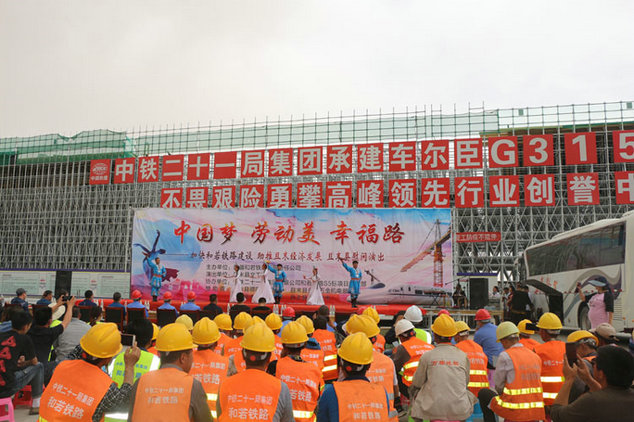 為弘揚(yáng)以企業(yè)為家的文化理念,凝聚職工向心力,調(diào)動(dòng)拓展員工的工作激情和斗志,確保和若鐵路項(xiàng)目各項(xiàng)節(jié)點(diǎn)目標(biāo)任務(wù)順利完成,近日,中鐵二十一局一公司和若鐵路S5標(biāo)項(xiàng)目經(jīng)理部與新疆和若鐵路有限公司聯(lián)合且末縣文工團(tuán)在和若鐵路S5標(biāo)一工區(qū)開(kāi)展了以“中國(guó)夢(mèng)•勞動(dòng)美•幸福路”為主題的慰問(wèn)演出活動(dòng)。
