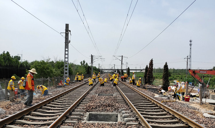 線路架空加固采用“縱挑橫抬梁”法,橫梁穿設采用“隔六穿一”。目前,該工程已順利完成對線路接觸網線桿改造、線上人工挖孔樁和線路應力放散施工。施工期間,列車長期慢行限速45km/h,慢行和封鎖施工涉及鐵路設備單位多,因此施工期間保證整個鐵路的人身安全以及線路設備安全成為了施工中的重點。為確保行車安全,項目部加大人員、設備投入,加強安全技術交底和安全管理,嚴格執(zhí)行“三清點、一確認”制度,每次列車通過后,及時進行檢查,發(fā)現(xiàn)問題隨時解決,保證線路幾何尺寸以及各構件連接可靠。