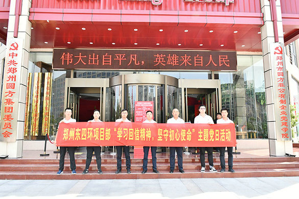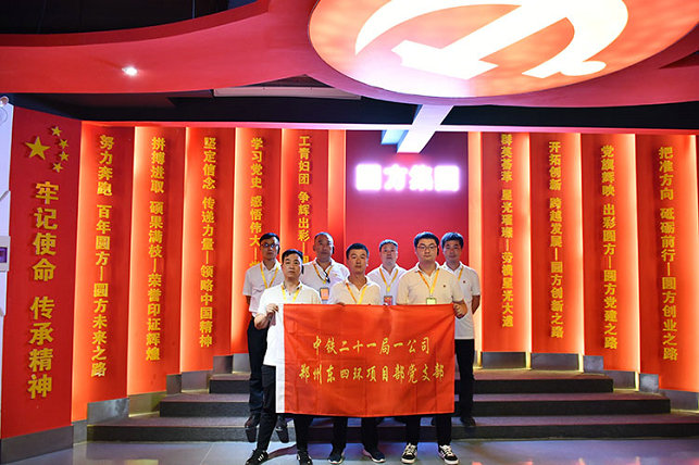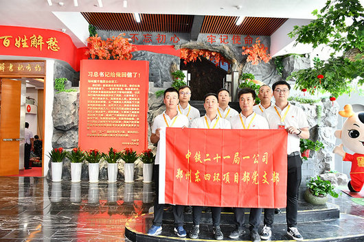 5月26日 ,中鐵二十一局一公司鄭州東四環(huán)項(xiàng)目黨支部在確保6.30主線橋通車會(huì)戰(zhàn)攻堅(jiān)的關(guān)鍵時(shí)刻,組織支部全體黨員、入黨積極分子等15人,走進(jìn)鄭州圓方集團(tuán)非公黨建學(xué)院參觀交流,零距離學(xué)習(xí)體會(huì)習(xí)總書記給予勞動(dòng)者們的關(guān)懷和鼓勵(lì),鼓舞干勁、組織實(shí)施勞動(dòng)競賽,全面掀起施工大干熱潮。