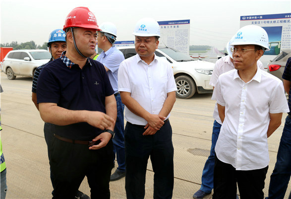 王國清一行來到中鐵一局京德高速ZT7標(biāo)跨趙王新河連續(xù)梁施工現(xiàn)場,聽取了項(xiàng)目經(jīng)理王剛關(guān)于京德高速ZT7標(biāo)近期工作進(jìn)展情況及后續(xù)工作計(jì)劃安排、時間節(jié)點(diǎn)要求以及存在問題的匯報。高度贊揚(yáng)了京德高速ZT7標(biāo)所取得的突出成績,對中鐵一局的工作作風(fēng)、標(biāo)準(zhǔn)化建設(shè)表示滿意,并針對項(xiàng)目當(dāng)前存在的問題困難提出了指導(dǎo)意見。王國清指出:一是要在抓好施工進(jìn)度的同時確保工程安全、質(zhì)量,尤其是重點(diǎn)、控制性工程,一定要把好工程安全、質(zhì)量關(guān),確保每道施工工序、施工環(huán)節(jié)的施工的質(zhì)量與安全,建人民滿意的優(yōu)質(zhì)工程;二是要充分、有效利用當(dāng)前世界先進(jìn)技術(shù)創(chuàng)新,做到京德高速工程建設(shè)技術(shù)引領(lǐng)未來行業(yè)發(fā)展,真正體現(xiàn)“雄安質(zhì)量”“雄安標(biāo)準(zhǔn)”;三是要突出工作重點(diǎn),有效突破工作中遇到的難題,激發(fā)創(chuàng)造活力,形成推動工程建設(shè)的強(qiáng)大合力。