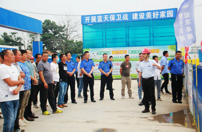 (西安訊)6月11日,西安國際港務(wù)區(qū)城管局帶領(lǐng)轄區(qū)內(nèi)各施工單位代表到中鐵一局建安公司中鐵絲路總部項(xiàng)目部觀摩并召開建筑垃圾清運(yùn)秩序整治暨揚(yáng)塵污染防治突擊月工作推進(jìn)會(huì)。