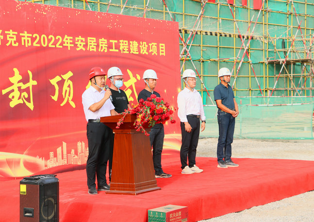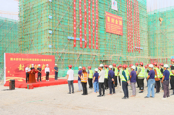 第三師圖木舒克市2022年安居工程建設(shè)項目自今年6月初開工以來,統(tǒng)籌抓好疫情防控和安全生產(chǎn),在項目實施封閉管理的艱難條件下,項目部全體員工及參建者齊心協(xié)力、共克時艱、努力拼搏,力爭按照工期節(jié)點要求向業(yè)主方交上滿意的答卷。此次順利封頂,對整個項目建設(shè)起到了積極的推進(jìn)作用,在封頂儀式上,該項目部全體參建職工表示將再接再厲、繼續(xù)發(fā)揚連續(xù)奮戰(zhàn)的精神,保質(zhì)保量完成后續(xù)建設(shè)工作。