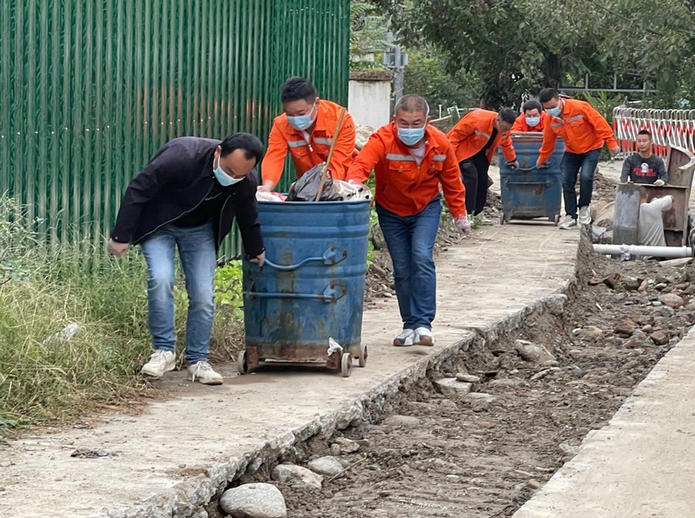 群眾事無小事,一枝葉總關情。9月以來,由于項目駐地旁村道安裝管道,道路阻塞,導致村社收集點垃圾得不到及時轉運,生活垃圾堆積成害,嚴重污染環(huán)境,影響村容村貌。為踐行志愿服精神,弘揚時代新風,給村民打造一個衛(wèi)生、整潔的生活環(huán)境,9月21日,該項目黨支部牽頭組織黨員和團員開展一次義務大掃除活動,對收集點中堆積已久的垃圾進行清理、打包、轉運。