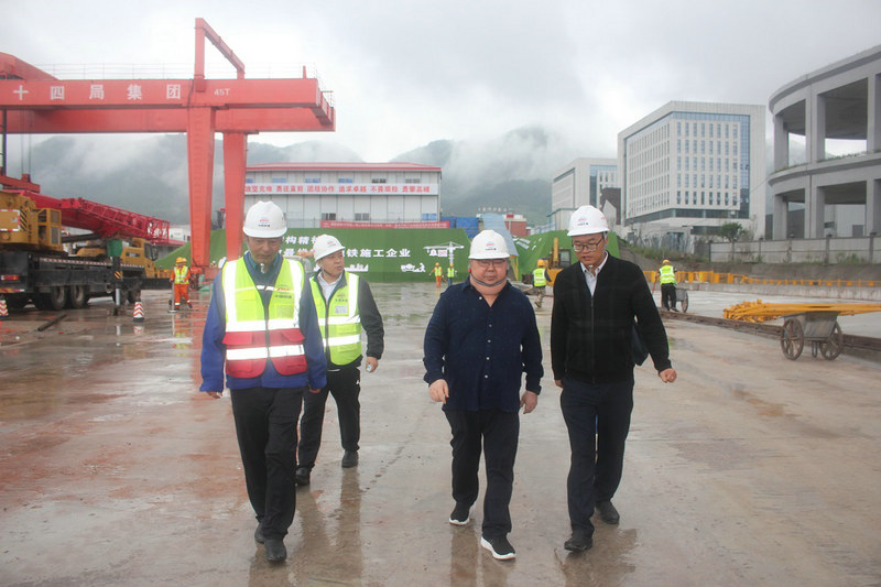總承包部指揮長(zhǎng)李兵(右2)到16標(biāo)盾構(gòu)始發(fā)井現(xiàn)場(chǎng)巡查督導(dǎo)