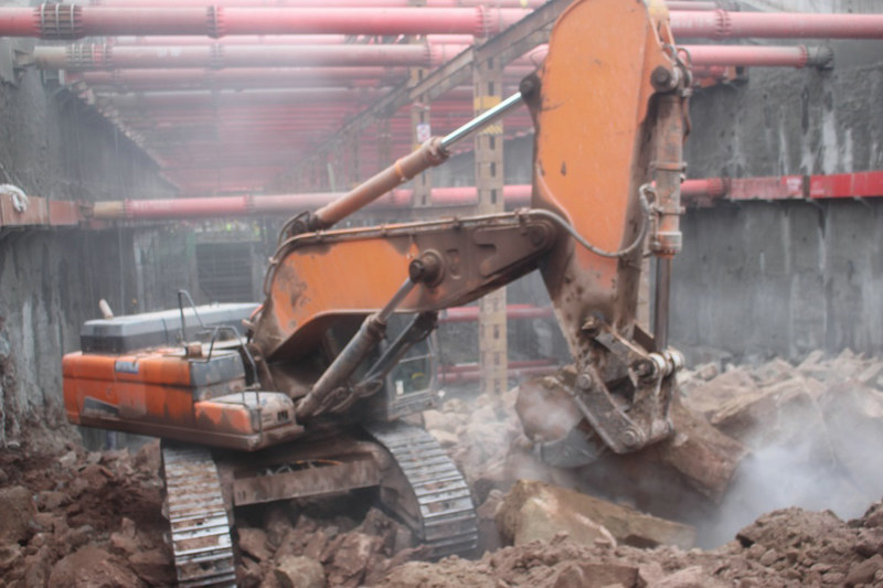 16標(biāo)挖掘機(jī)在盾構(gòu)左線井口深挖區(qū)作業(yè)
