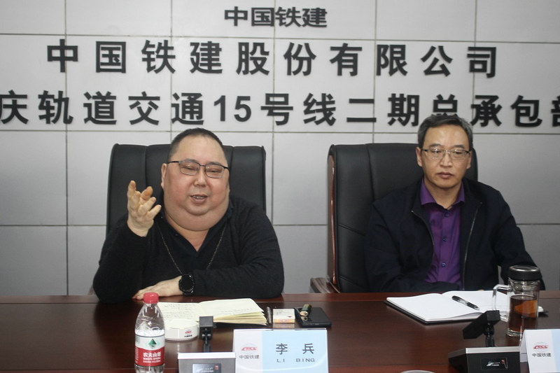 15號(hào)線總承包部指揮長(zhǎng)李兵(左)在會(huì)上作交流