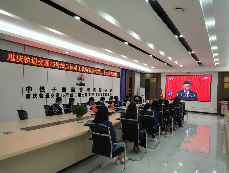 10月16日上午,中國鐵建重慶投資集團軌道交通15號線二期總承包部及所屬各標(biāo)段項目部采取線上線下,集中分散相結(jié)合的方法,收看中國共產(chǎn)黨第二十次全國代表大會開幕式直播,認(rèn)真聆聽習(xí)近平總書記代表第十九屆中央委會作報告。會后,召開了座談會,話感悟,談體會。