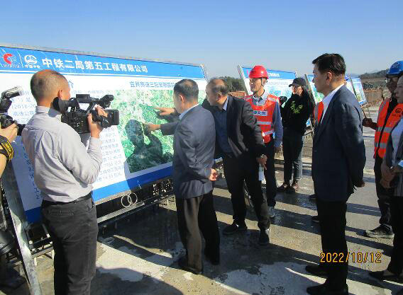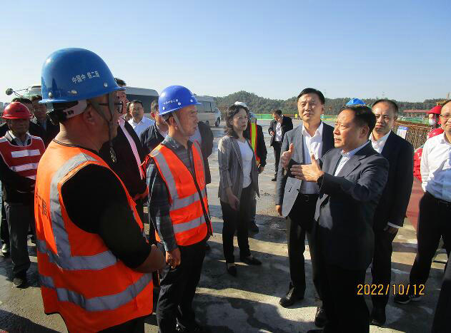 (通訊員 陳睿)2022年10月12日,江西省副省長、黨組副書記殷美根,省交通運輸廳黨委書記、廳長王愛和,宜春市副書記、市政府黨組書記、市長嚴允率領督導組來到中鐵二局五公司宜井高速A3標項目新田樞紐互通立交橋施工現(xiàn)場開展督導調(diào)研。實地察看項目形象進度,詳細聽取項目建設進度、施工安全、工程質(zhì)量等情況匯報。殷美根指出,新田樞紐互通立交橋是全線的咽喉工程,明年元旦能否開通在此一舉。此次督導是貫徹黨中央、國務院決策部署的具體行動,也是落實省委、省政府“拼搏三季度、奠定全年勝”的務實之策。中鐵二局必須全力以赴做到“三個增加”和“三個確保”。即增加人員、增加設備、增加工作時間,確保安全、質(zhì)量、進度。一是緊盯施工進度。圍繞目標任務,優(yōu)化施工方案,倒排工期,全力推動項目建設增速提效。二是緊盯工程質(zhì)量。嚴控原材料進場驗收,強化標準化施工,打造品質(zhì)工程。三是緊盯安全生產(chǎn)。時刻繃緊安全這根弦,加強安全隱患排查整治,筑牢安全防線。按照“以日保月”和“層層抓落實”的工作思路,統(tǒng)籌推進項目高效建設,落實領導包保、值班值守等措施,以優(yōu)異成績兌現(xiàn)年底通車目標的實現(xiàn)。