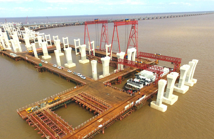 該項(xiàng)目部克服臺(tái)風(fēng)、暴雨、資金緊張等困難,確保鋼箱梁和疊合梁生產(chǎn)、運(yùn)輸、架設(shè)的連續(xù)性,截止目前,架設(shè)鋼箱梁51片。預(yù)計(jì)明年6月底,濱?;ネㄆ磳挊蚝驮训罉蚣茉O(shè)完畢。