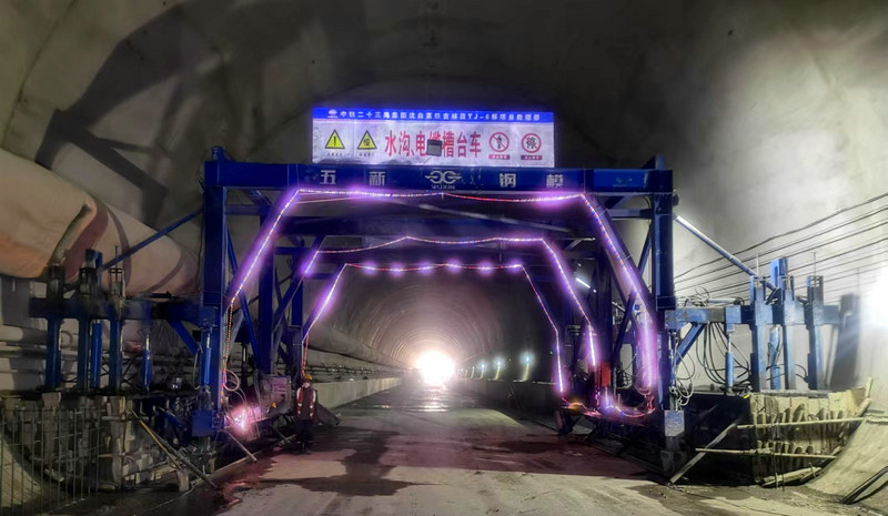 中鐵二十三局沈白高鐵項(xiàng)目部承建的沈白高鐵吉林段長(zhǎng)青隧道全長(zhǎng)11316.08米,是全線第二長(zhǎng)大隧道,施工難度大。該項(xiàng)目有針對(duì)性地加大對(duì)隧道水溝電纜槽的施工組織力度,不斷創(chuàng)新施工方法取得了明顯成效。過(guò)去傳統(tǒng)的隧道水溝電纜槽施工采用人工單邊側(cè)模作業(yè)方法,模板由小塊鋼模和木模組合,立模時(shí)需要人工按編號(hào)拼裝,模板固定較為困難,且無(wú)法一次性組裝成型,耗時(shí)、費(fèi)力、效率低,電纜槽外觀質(zhì)量及線型平整度控制難度較大。為此,在長(zhǎng)青隧道進(jìn)口施工前,他們提前與專業(yè)生產(chǎn)廠家聯(lián)系,量身定制了門架式水溝電纜槽液壓臺(tái)車,臺(tái)車自動(dòng)走行,且完全行走在水溝電纜槽以外仰拱填充面上,不受任何限制,不影響洞內(nèi)車輛正常通行。同時(shí),水溝電纜槽模板采用液壓式升降定位裝置,實(shí)現(xiàn)了模板的自動(dòng)定位和脫模,一次澆筑成型。從而收到了簡(jiǎn)化工序、節(jié)約人力、降低成本、提高效率、保證質(zhì)量、活完場(chǎng)清的實(shí)實(shí)在在好處。在施工過(guò)程中,他們還重點(diǎn)把握測(cè)量放線、鑿毛(專用鑿毛機(jī))、鋼筋加工及安裝、基底沖洗、模板安裝及定位、澆筑混凝土、拆模等質(zhì)量卡控要點(diǎn),解決了因養(yǎng)護(hù)不到位產(chǎn)生槽身細(xì)微裂縫、拆模易造成缺棱掉角;水溝電纜槽斷面尺寸過(guò)小,橫向?qū)?、排水管安裝困難;完成澆筑后管口位置易跑偏等質(zhì)量通病。“通過(guò)我們對(duì)施工工藝的優(yōu)化完善,水溝電纜槽施工實(shí)現(xiàn)了設(shè)備走行、空間位置粗調(diào)和精調(diào)自動(dòng)化,還配置了作業(yè)平臺(tái)、輔材和輔助設(shè)備存放箱等,讓施工更加得心應(yīng)手。如今使用臺(tái)車3個(gè)人每天可完成水溝電纜槽施工9米,提質(zhì)增效保工期一舉多得”中鐵二十三局沈白高鐵項(xiàng)目部一分部負(fù)責(zé)隧道工程的副經(jīng)理程正法介紹說(shuō)。
