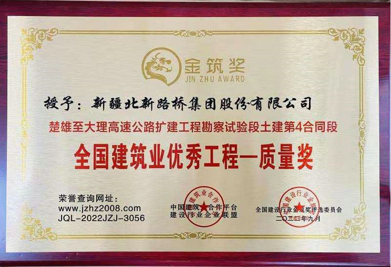 大理訊(通訊員 孫兆艷 劉繼紅)近日,由兵團(tuán)交通建設(shè)有限公司承建的云南楚雄至大理高速公路改擴(kuò)建工程勘察試驗(yàn)段土建第四合同段工程(以下簡稱云南楚大項(xiàng)目)榮獲“全國建筑行業(yè)優(yōu)秀工程-質(zhì)量獎(jiǎng)”。
