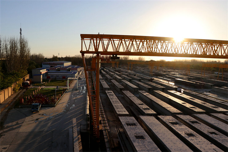 為確保工期節(jié)點(diǎn)目標(biāo),該項(xiàng)目始終以“質(zhì)量與安全齊抓、進(jìn)度與效率并重”為原則,以“智能化、科技化、信息化”作為建設(shè)要點(diǎn),著力打造新型梁場、智慧工地,讓箱梁預(yù)制生產(chǎn)“飛”起來。制梁場建設(shè)之初,六工區(qū)項(xiàng)目統(tǒng)籌規(guī)劃,科學(xué)部署,從預(yù)制梁場選址、規(guī)劃到建設(shè),僅用50余天就實(shí)現(xiàn)梁場正式投產(chǎn),并于2021年3月24日完成首榀箱梁預(yù)制施工。