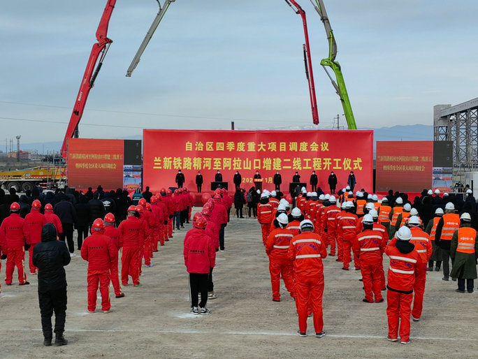 11月30日,由中鐵二十一局參建的蘭新鐵路精河至阿拉山口段增建二線工程在阿拉山口火車站舉行開(kāi)工儀式。