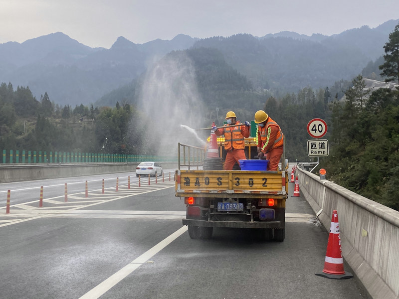在各交安項(xiàng)目鏖戰(zhàn)大干的同時(shí),金路公司各養(yǎng)護(hù)項(xiàng)目也絲毫沒有停步。為保證項(xiàng)目施工如期進(jìn)行,渝西養(yǎng)護(hù)中心的工人們住進(jìn)了銅梁北收費(fèi)站,全力沖刺渝遂高速護(hù)欄改造工程;渝東養(yǎng)護(hù)中心則趕在冰雪雨霧惡劣天氣到來前組織各工區(qū)對(duì)抗冰除雪工作進(jìn)行經(jīng)驗(yàn)交流,全面完善優(yōu)化應(yīng)急響應(yīng)、物資儲(chǔ)備、融劑使用、督導(dǎo)檢查等清雪機(jī)制,為冬季抗冰除雪保暢工作做好充分準(zhǔn)備。