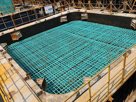 該項目部分步驟進行施工。首先是搭建作業(yè)平臺,具備條件后開始插打樁基鋼護筒、吊裝鋼筋籠、灌注混凝土,然后是破樁頭,在鋼護筒上焊接“牛腿”、安裝底板,立模、綁扎鋼筋網(wǎng)、連續(xù)澆筑幾百立方混凝土,承臺多道工序便全部完成。在施工中,承臺緊跟樁基步伐,樁基多點開花后,由于承臺鋼模數(shù)量難以滿足快速推進施工需要,陸續(xù)增至19套鋼模。最早開工時間是2020年1月4日,在B74號左幅拉開序幕。杭甬項目設計承臺348座,其中與濱海互通相連、已經(jīng)完工的濱海高架橋178座,施工難度主要是臨水作業(yè),潛在的安全隱患多,海潮上漲沒有規(guī)律,一天一個時間,只要看到潮水向承臺方向涌來,馬上組織人員撤離。潮水上漲速度很快,一旦撤離慢了,將面臨生命危險。為保證作業(yè)人員的安全,項目部安排專職安全員在承臺施工區(qū)域巡查,發(fā)現(xiàn)漲潮時,馬上通知施工人員離開。自2019年8月開工以來,由于安全措施到位,施工人員高度警惕,杭甬項目承臺施工未出現(xiàn)一次險情。