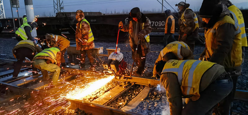 12月27日,400余名工人冒著零下17度的嚴寒經(jīng)過連續(xù)8.5小時的鐵路二級封鎖施工,成功拆除既有道岔6組,線路59.43米,插入道岔5組,補充軌排46.16米,同步哈密東Ⅱ場(駝峰尾部)、Ⅲ場(上行出發(fā)場)新增信號設(shè)備安裝調(diào)試,室內(nèi)外配線拆改,新聯(lián)鎖、CTC軟件更換及聯(lián)鎖試驗,軋道試驗、改方、場聯(lián)試驗;調(diào)度所局中心服務(wù)器數(shù)據(jù)修改,完成哈密東Ⅲ場接觸網(wǎng)接觸懸掛撥移、過渡、調(diào)整,哈密東Ⅱ、Ⅲ場聯(lián)絡(luò)線Ⅱ-2#與Ⅱ-3#支柱間接觸網(wǎng)線索對接、分段絕緣器安裝及調(diào)試,隔開引線安裝及調(diào)整,接觸網(wǎng)熱滑試驗。標志著由中鐵二十一局集團承擔施工的哈密東站擴能改造工程順利完成。