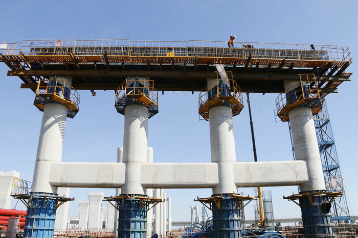 濱海互通35座蓋梁順利完工,將為架梁掃除了重要障礙。