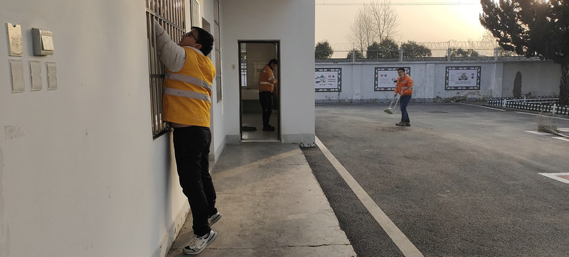 “李達(dá)負(fù)責(zé)學(xué)習(xí)室、辦公室衛(wèi)生,學(xué)習(xí)室的桌椅擦過(guò)后要擺放整齊。衛(wèi)生間及浴池由李金秋負(fù)責(zé),特別注意,衛(wèi)生間及浴池在拖地時(shí),一定要將拖把的水瀝凈才能拖地,以免天冷地面結(jié)冰。殷陳澳、徐海根負(fù)責(zé)各個(gè)區(qū)域的窗臺(tái)、玻璃,每個(gè)地方都要擦干凈,特別是窗臺(tái)死角必須全面徹底清理……”王寨示范隊(duì)在早上點(diǎn)名時(shí),當(dāng)日輪值工長(zhǎng)王樂(lè)對(duì)環(huán)境衛(wèi)生整治進(jìn)行詳細(xì)布置。清掃院內(nèi)、擦拭窗戶(hù)、清理死角……每個(gè)人按照分工對(duì)區(qū)域衛(wèi)生認(rèn)真打掃。一上午,值班人員對(duì)區(qū)域衛(wèi)生全部打掃完畢,一個(gè)窗明幾亮、整潔干凈的衛(wèi)生環(huán)境呈現(xiàn)眼前。