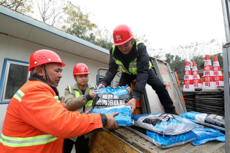 目前正值春運(yùn),為確保道路暢通,金路公司還準(zhǔn)備充足的快速搶修修補(bǔ)劑和冷補(bǔ)料。養(yǎng)護(hù)人員使用該修補(bǔ)劑修補(bǔ)橋梁伸縮縫,只需約6個小時就能達(dá)到通車條件,而傳統(tǒng)的需要約4天。冷補(bǔ)料用于修補(bǔ)路面坑槽,可以實現(xiàn)破損道路隨時搶修,修補(bǔ)完就能通行。而傳統(tǒng)的拌合站熱補(bǔ)料,至少兩個小時才能通行;增加道路搶修備用人員,確保事故發(fā)生后,他們可以第一時間上路協(xié)調(diào)交巡警參與應(yīng)急搶險救援。