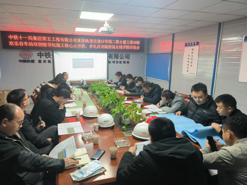 2月13日下午,中鐵建重慶軌道交通15號線二期土建工程總承包部18標(biāo)項(xiàng)目部組織建設(shè)單位、監(jiān)理單位、勘察單位、設(shè)計單位、第三方監(jiān)控量測單位、施工監(jiān)測單位和施工單位召開歡樂谷車站雙側(cè)壁導(dǎo)坑施工核心土開挖方案討論會,經(jīng)過各方論證,認(rèn)為該方案切實(shí)可行順利通過了論證。