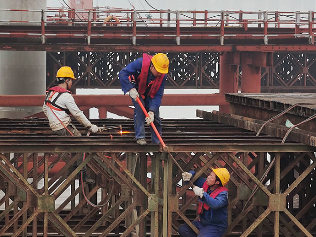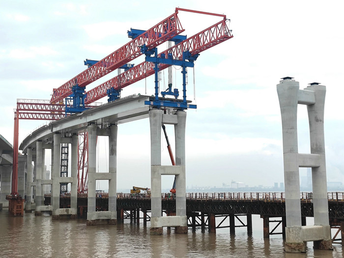 元宵節(jié)前后這段時間,杭州灣地區(qū)與往年相比,雨水激增,杭甬復(fù)線互通位于鎮(zhèn)海區(qū)海域,連綿不絕的雨水給運梁、架梁、拆除棧橋和橋面混凝土施工帶來一定困難。雨水天一個突出特點是,氣溫低、濕滑,有雨必有風(fēng),可謂風(fēng)雨交加?;颐擅傻臍饬骰\罩著氣勢恢宏的濱海互通,動蕩不安的海水越發(fā)不安分。置身于棧橋上、高空橋梁上的員工們經(jīng)受著雨水的“沐浴”,冷得渾身發(fā)抖,可是不到下班時間不能隨便離開。穿上雨衣干活,顯得笨手笨腳,而雨衣常常在施工過程中不小心被釘子、鋼筋劃破,哪個員工的雨衣都有幾個口子,雨水會順著不起眼的裂口流進里面的衣服上。這還不算啥,濕漉漉的天氣潛伏著安全隱患才值得警惕。由于腳下的地面都是水,容易滑倒摔傷。但不能因為下雨而停工,除非遇到大雨或暴雨、7級以上大風(fēng),才撤離現(xiàn)場。一般小雨和6級以下風(fēng)力,都要照常施工。季節(jié)性的變化是自然規(guī)律,誰也阻止不了雨水的降臨。為了員工的安全,項目部按照雨天安全管理辦法,由現(xiàn)場負責(zé)人、安全總監(jiān)、專職安全員每天在工地巡檢,在排除安全隱患的同時,最有效的辦法便是大聲提醒作業(yè)員工,上班要穿防滑鞋,走路要小心,臨水和高空作業(yè)要系好保險繩,不能嫌麻煩、圖省事,要在保證個人的生命安全的前提下進行施工。濱?;ネㄊ墙衲晟习肽旯缘闹刂兄兀媱澤a(chǎn)鋼箱梁232片、疊合梁90片,現(xiàn)澆橋面板41聯(lián),安裝防撞欄14472米,完成鋼箱梁架設(shè)142片、疊合梁90片。任務(wù)都分解到各施工隊,規(guī)定了完成任務(wù)的節(jié)點,從項目部到施工隊員工,以不畏難、不怕苦、勇?lián)?dāng)、只爭朝夕的拼搏精神投入到工作中。兩個棧橋隊以每天拆除30多平米棧橋的速度向前推進。舟山梁場晝夜不停地生產(chǎn)加工鋼箱梁、疊合梁。橋面施工隊組織機械和人力緊鑼密鼓地鋪設(shè)鋼筋網(wǎng)、澆筑混凝土。卸梁站、提梁站以及運梁車和兩臺架橋機的操控人員,在現(xiàn)場管理人員指導(dǎo)下緊張有序地進行作業(yè)。