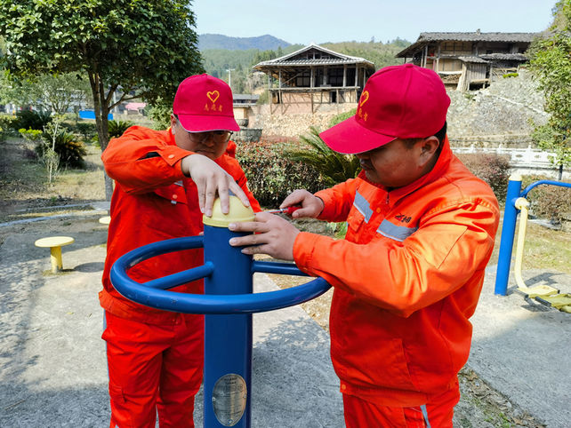 3月1日下午,和煦的陽光照耀著綠水青山,青年志愿者們在項目部駐地院內(nèi)集合整隊,他們即將出發(fā)去幫村民維修整理健身器械,也是全村唯一一處為村民提供休閑健身的地方。