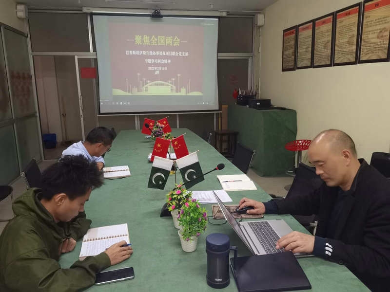 烏魯木齊訊(通訊員 潘珍雙)陽春三月,萬物復(fù)蘇。為深入學(xué)習(xí)宣傳貫徹全國“兩會”精神,3月10日,北新路橋國際工程事業(yè)部巴基斯坦伊斯蘭堡辦事處及項(xiàng)目聯(lián)合黨支部組織全體黨員干部職工開展專題學(xué)習(xí)活動(dòng),并圍繞學(xué)習(xí)內(nèi)容進(jìn)行交流研討。