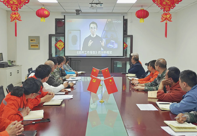 “兩會”期間,在職工早、午飯時組織收看“兩會”盛況,關(guān)注“兩會”動態(tài),領(lǐng)會“兩會”精神,及時推轉(zhuǎn)相關(guān)報道、視頻、文字解讀等資料,做好職工群眾的思想教育勤務(wù)員,積極營造貫徹全國“兩會”學(xué)習(xí)精神的濃厚氛圍。