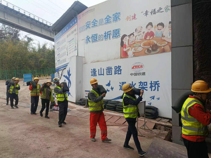 此次防洪演練模擬內(nèi)容為,中梁山隧道進(jìn)口因近期持續(xù)降雨,洞口及棄土場區(qū)水位上漲、積水增加的趨勢,隨時(shí)可能發(fā)生洪水倒灌隧道洞口,現(xiàn)場安全總監(jiān)立即向項(xiàng)目經(jīng)理報(bào)告現(xiàn)場情況,一方面開展人員撤離,另一方面組織人員堆碼沙袋、疏散警戒、人員應(yīng)急搶險(xiǎn)等模擬演練。目的是檢驗(yàn)隧道施工人員應(yīng)急響應(yīng)、現(xiàn)場搶險(xiǎn)、事故報(bào)告、應(yīng)急處置、應(yīng)急預(yù)案的可操作性和現(xiàn)場應(yīng)急處置能力。