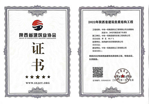 (咸陽訊)近日,由中鐵一局建安公司承建的北塬基地改造項目榮獲2022年“陜西省建筑優(yōu)質(zhì)結(jié)構(gòu)工程”榮譽稱號。