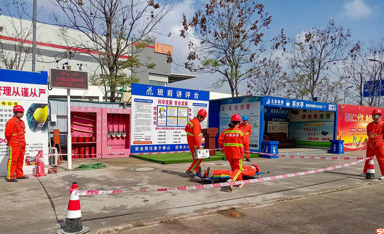 據(jù)了解,本次演練針對成都德辰項(xiàng)目裝飾裝修階段采用腳手架施工時(shí),極易發(fā)生的高處墜落事故進(jìn)行應(yīng)急演練,現(xiàn)場檢驗(yàn)了項(xiàng)目高處墜落專項(xiàng)應(yīng)急救援預(yù)案的有效性和可操作性,覆蓋全體應(yīng)急小組成員和一線班組人員,涵蓋通信聯(lián)絡(luò)、疏散警戒、搶險(xiǎn)救援、醫(yī)療救護(hù)、物資保障等各方面應(yīng)急工作。