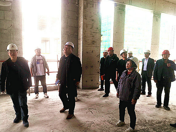 圖為驗收小組對項目17#-19#商業(yè)樓主體進行全面檢查驗收